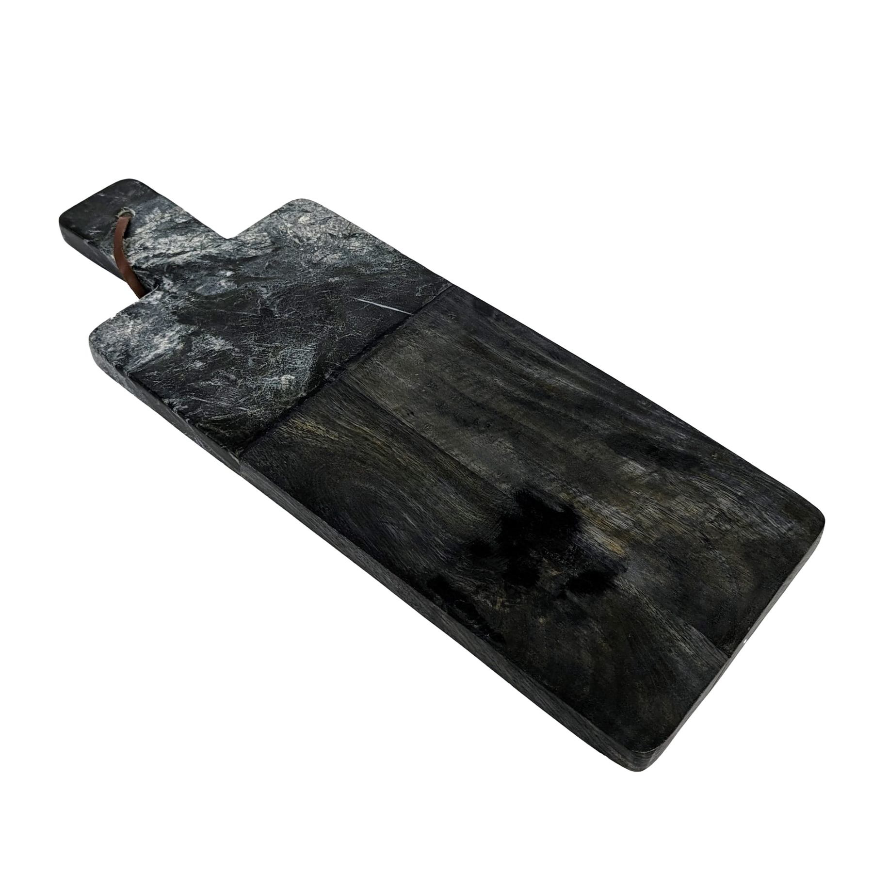Add a stylish twist to your kitchen with this marble and black cutting board. Perfect for chopping, serving, or displaying your favorite treats, it blends elegance with everyday practicality. Its sleek design turns any snack into a masterpiece!