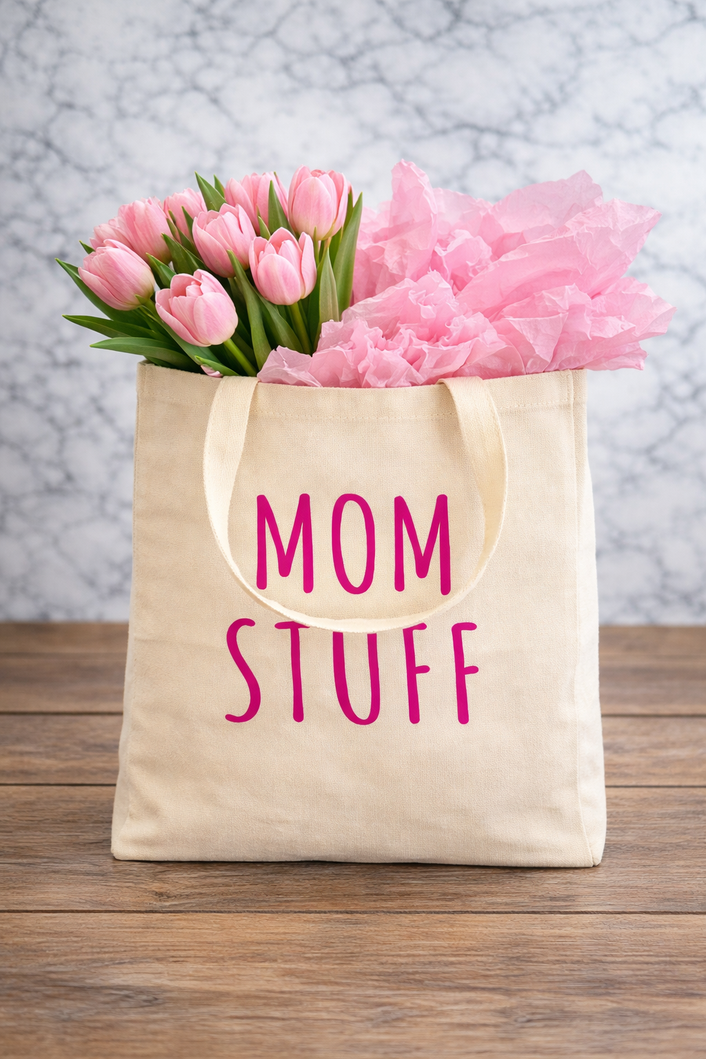 Tote all your mom essentials in style with this Mom Stuff Tote Bag! This playful violet tote can hold all the good stuff your mom life requires. Stay organized and on-trend with this must-have accessory. (Mom-approved and versatile!)