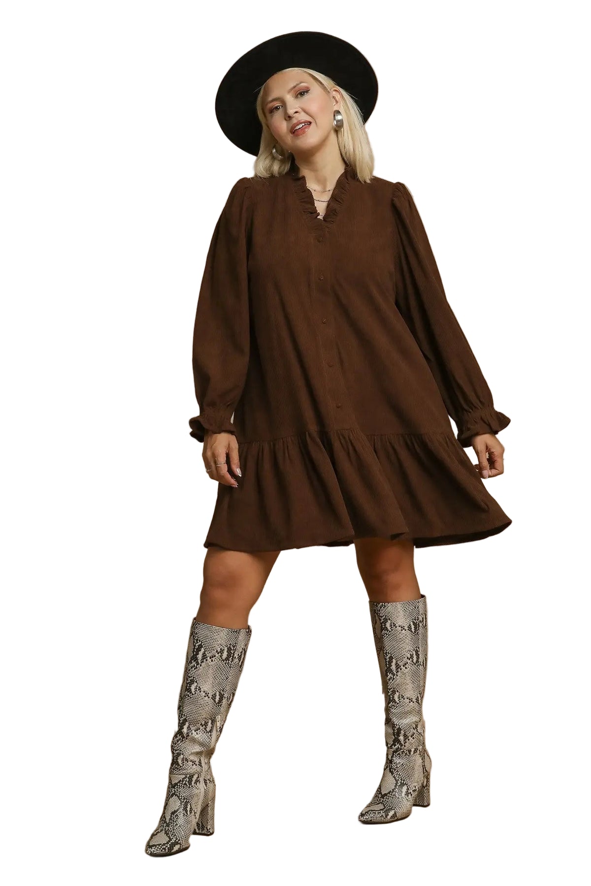 Wrap yourself in cozy charm with this dark brown dress, perfect for fun fall adventures. Its rich, warm hue pairs beautifully with autumn leaves, while the playful design lets you enjoy every crisp breeze in style. Ideal for pumpkin patches, apple picking, or casual outings, this dress blends comfort and seasonal spirit effortlessly.
