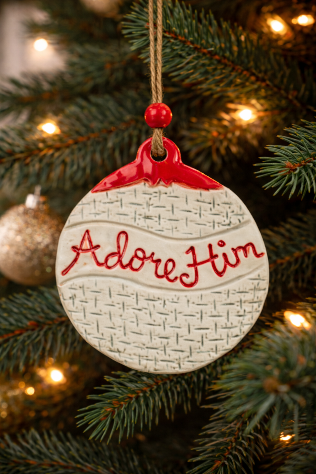 Ornament Praise Him Burlap Gray *CM