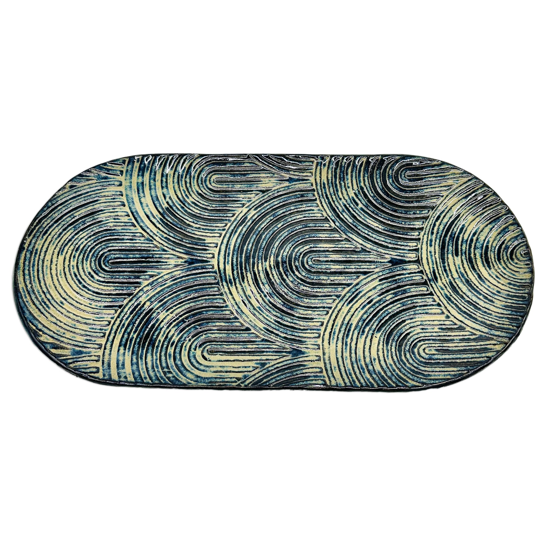 Blue Oval Arch River Rock Tray